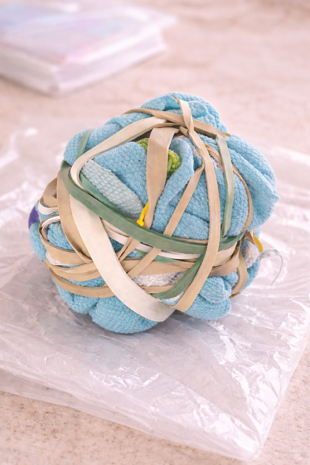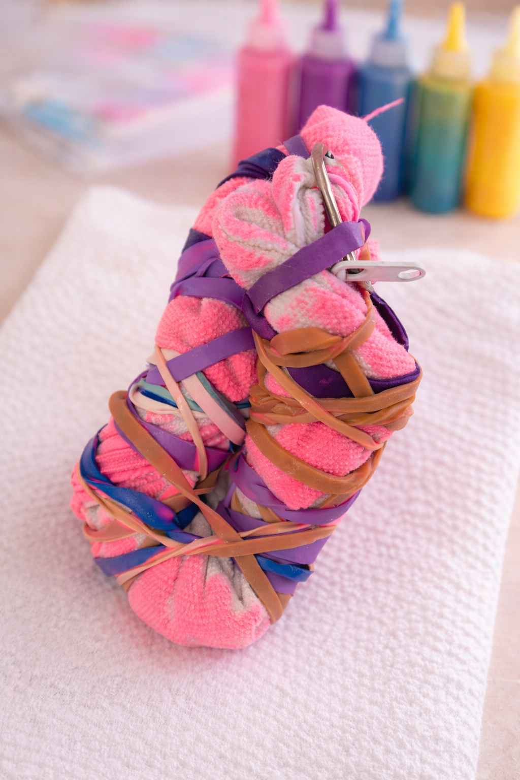*Tip: The tighter the rubber bands, the more white space and defined patterns you’ll get.